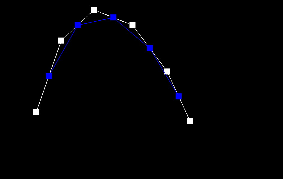 2, we compute the n – 1 intermediate points by Vector3D lerp = (1.0 - t) * points[i] + t * points[i + 1]. If there
