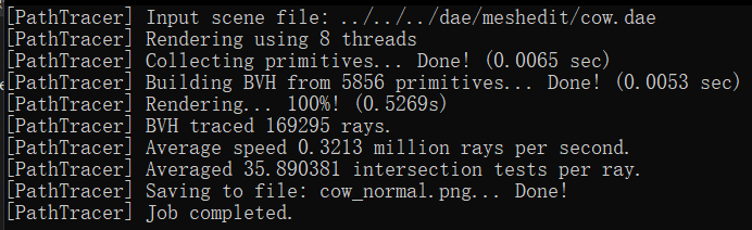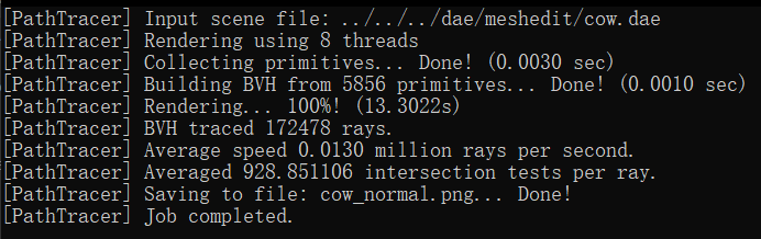 (BVH) compared to not using it. For instance, rendering the 'cow.dae' file without BVH took 13.3022 seconds, but