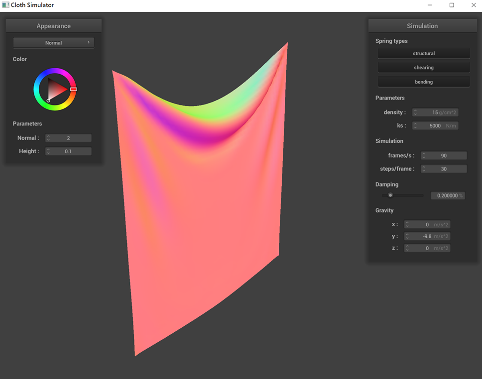 spring constraints. We calculated the force for each mass point using loop traversal and Hooke's Law. The positions
